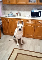 Ищем для собаки новый дом! Сейчас она живёт у моих пристарелых родителей. Пенсионерам ухаживать за ней и выгуливать её стало сложно. К себе забрать не могу, т. к. нет возможности гулять с ней. Найдись добрый хозяин.